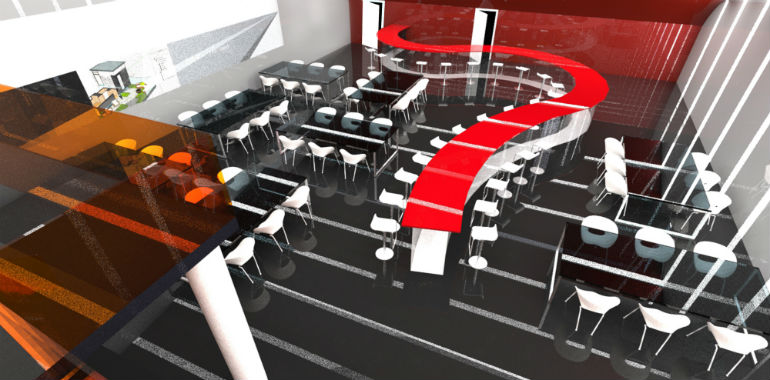 Red Hot Jazz, il bar innovativo. Il designer di riferimento per i ragazzi che hanno elaborato questo progetto è Shiro Kuramata. “Il suo stile minimalista e fuori dagli schemi ci ha guidato alla progettazione di questo bar innovativo – commentano gli studenti – dalla capacità di saper accogliere persone che vogliono trascorrere più tempo all’interno, con la possibilità di collaborare tra loro in varie attività di lavoro o studio, potendo consumare pasti e bevande”. Tra le caratteristiche da segnalare, “la scelta dei materiali, vetro, alluminio e resina specchiata, l’innovativa disposizione dei tavoli interattivi, in una struttura geodetica senza finestre, con numerosi elementi curvilinei che donano dinamicità all’ambiente, come il controsoffitto, le scale e il bancone: quello che primeggia in tutto il locale, attraversandolo quasi completamente”.