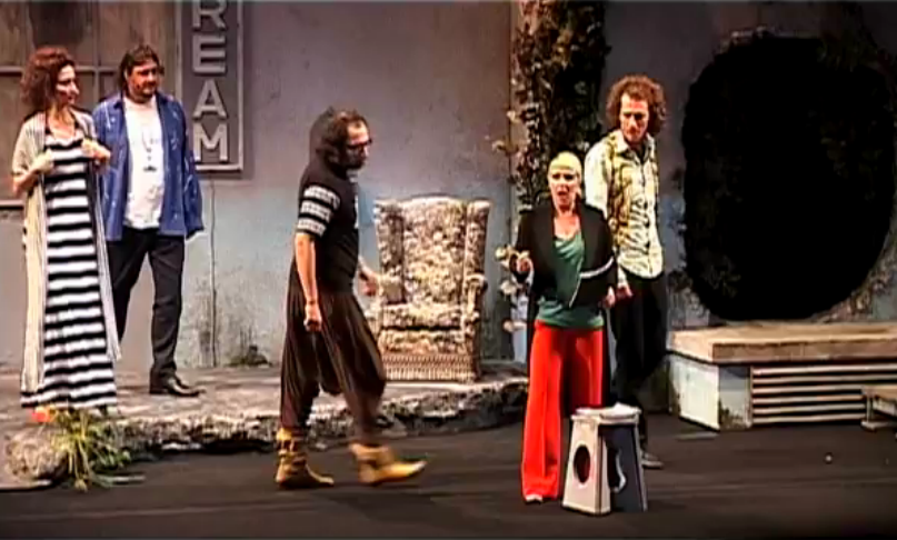 uno Shakespeare in versione cabaret" alt="" width="150" height="150" />Per i personaggi Gioele Dix ha scelto una compagnia di giovani comici presi in prestito dal palco di Zelig: così Corrado Nuzzo e Maria di Biase spogliano i panni della coppia “Cos’avrà voluto dire?” per vestire sia quelli degli sposi Ippolita e Lisandro che quelli dei tormentati Titania e Snug. Sempre dagli schermi tv si staccano Alessandro Betti e Maurizio Lastrico nel ruolo dei giovani amanti con Marta Zoboli e Katia Follesa, mentre condurre le fila della trama c’è l’incredibile voce di Petra Magoni, buffo Puck pronto a mescolare le carte e fare il gioco creato dalla fantaasia del Bardo sulle note del contrabbasso di Ferruccio Spinetti, testimone silenzioso e talvolta importunato dagli esuberanti attori.
