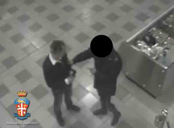 Nella foto il tentativo di borseggio e sotto le fasi della cattura operata dai Carabinieri