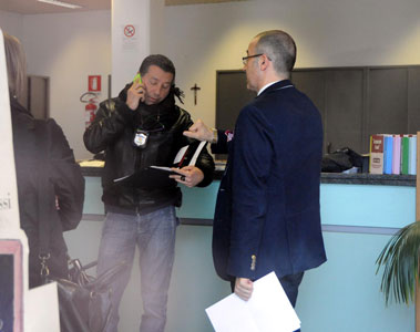 Gli uomini dell’Anticrimine della Polizia al lavoro all’interno dell’agenzia di via IV Novembre (Fotoservizio Giulio Giordano)