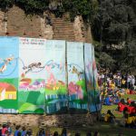 Lungo tutta la superficie delle Mura venete che racchiudono a nord il Campo di Marte è stata allestita una scenografia lunga 90 metri e ispirata al quadro di Chagall “Il Viaggiatore”, su libera interpretazione di Fabrizia Pagotto. La parete colorata è composta da ben 60 quadri, uno per ogni scuola presente, dipinti dai bambini durante gli scorsi mesi. Oltre 2500 bambini, contraddistinti da magliette colorate, si sono raccolti nel grande prato ai piedi delle Mura e hanno interpretato cinque canzoni con canti e coreografie; Il primo è stato “La mia città” realizzato da Roberto Piumini e adattato da Piero Lombardi, seguito dal canto popolare “Fiume” e dalle tre canzoni composte dalle 60 scuole: “L’ambiente sei tu” per le scuole dell’infanzia, “Sento un grido” per le scuole primarie e “Il Rifiutando”, realizzata con il contributo delle scuole secondarie di primo e secondo grado.
