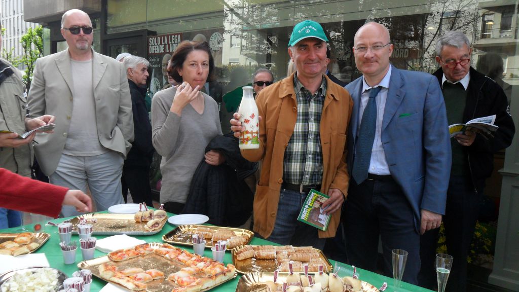 Aperitivo a base di prodotti nostrani e dopo le bollicine un brindisi con un bicchiere di latte vaccino. Il candidato della Lega Nord Alberto Torazzi ha organizzato un momento conviviale per lanciare il programma delle prossime amministrative dedicato a militanti locali, simpatizzanti e ospiti d’eccezione, tra cui l’Onorevole Francesco Speroni, Eurodeputato della Lega Nord. Per l’occasione all’angolo tra viale Repubblica e via Gramsci è stato allestita una vetrina arredata con manifesti elettorali, dove un televisore ripropone un video che presenta candidati cremaschi e le idee che sostengono. Tra le novità anche la maglietta di propaganda elettorale, rigorosamente verde con slogan dedicato al candidato cremasco.