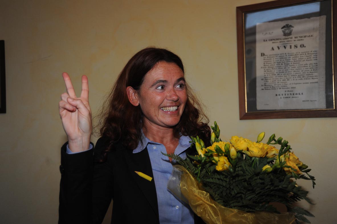 Emozionata e ancora un po’ incredula, la prima donna sindaco di Crema ha fatto il suo ingresso a Palazzo Comunale. “E’ stata una vittoria corale costruita con tutta la città – afferma Stefania Bonaldi– Siamo la testimonianza che la buona politica vince anche contro l’antipolitica”. L’elezione al primo turno ha scongiurato l’ipotesi dl ballottaggio, un successo segnato soprattutto grazie ai voti raccolti nei quartieri cremaschi spesso al centro dell’ultima campagna elettorale. E’ proprio da lì che il nuovo sindaco intende ripartire: “L’impegno dei primi cento giorni è quello di tornare nei quartieri, perché non si va solo a raccogliere voti ma a confrontarsi con i cittadini e raccogliere tanto i meriti quanto le critiche”. La riflessione si sposta su quel 66 per cento di votanti, un dato sintomatico che invoca un cambiamento necessario del modo di fare politica: “Dovremo tornare ad amministrare l’intera città, voglio essere il sindaco di tutti i cittadini – riprende Bonaldi – Per questo motivo ho chiesto l’aspettativa, voglio essere un sindaco a tempo pieno e voglio che la mia presenza sia garanzia d’impegno e attenzione”. La prima cittadina conclude con un pizzico d’orgoglio tutto personale: “Il valore di un politico non dipende da questioni di genere ma sono fiera di esser il primo sindaco donna, e fiera di essere una mamma”. Un boato, poi applausi, cori; finalmente anche per l’imperturbabile Stefania Bonaldi la tensione si allenta in un sorriso ad occhi lucidi.