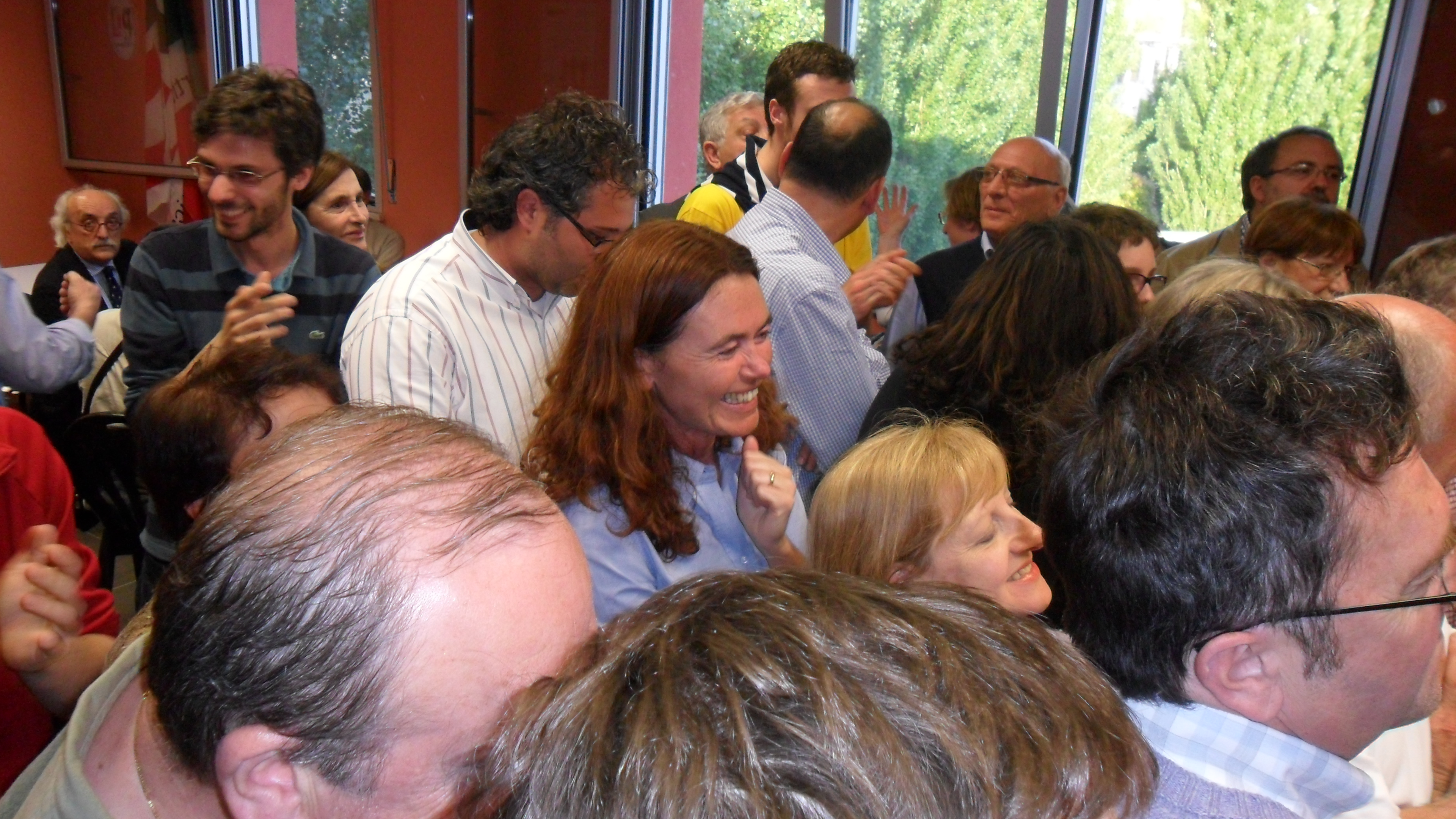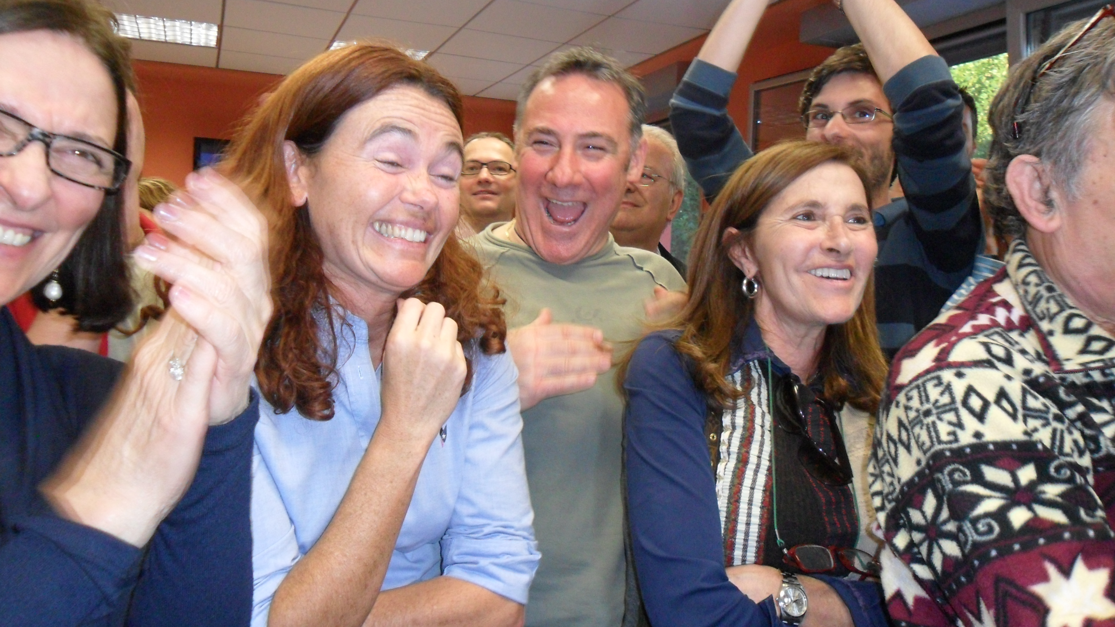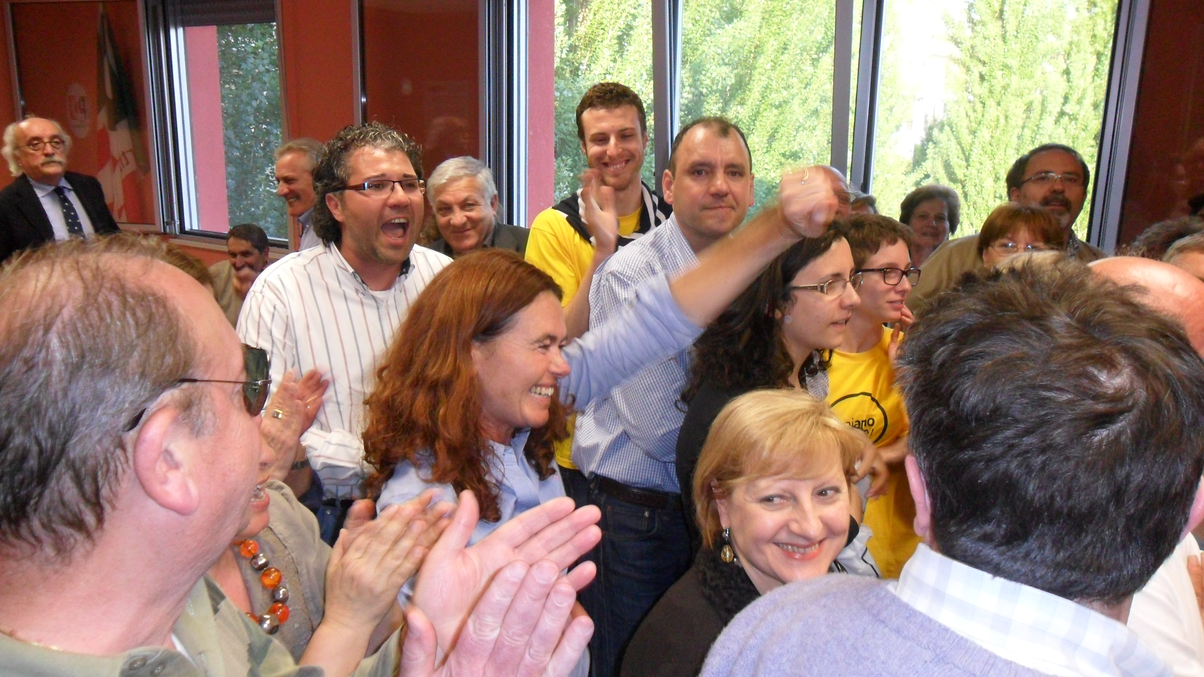 I minuti passano e con la temperatura aumenta il brusìo. Sono le 17 quando la percentuale di voti per la coalizione di centrosinistra supera la soglia del 50 per cento sui primi seggi; l’esultazione è inevitabile ma contenuta, per poi ripresentarsi in una seconda ondata un’ora dopo con la conquista di quell’ 1 per cento che segna la maggioranza assoluta. E’ presto, si sente bisbigliare, mentre il nugolo di spettatori impazienti di fronte allo schermo tv s’infittisce. La temuta doccia fredda arriva con i dati di Crema 1, il seggio centrale in cui Agazzi svetta su Bonaldi per una sessantina di voti, riportando la percentuale a rischio ballottaggio. L’exit poll dei quartieri riporta l’equilibrio a favore del centrosinistra ma la tensione non si allenta.