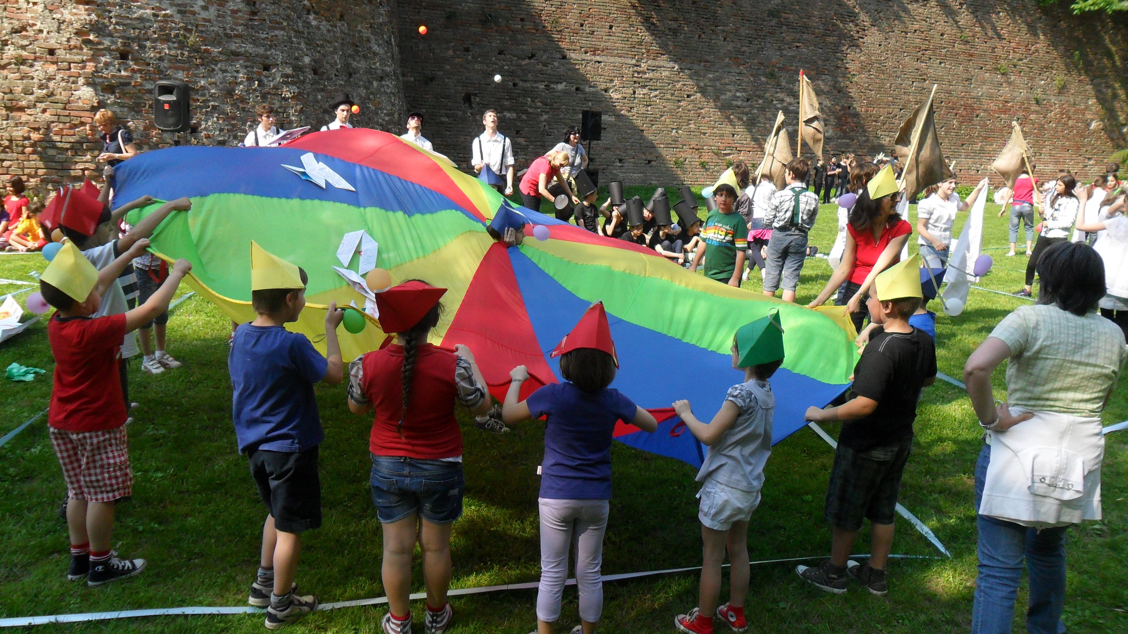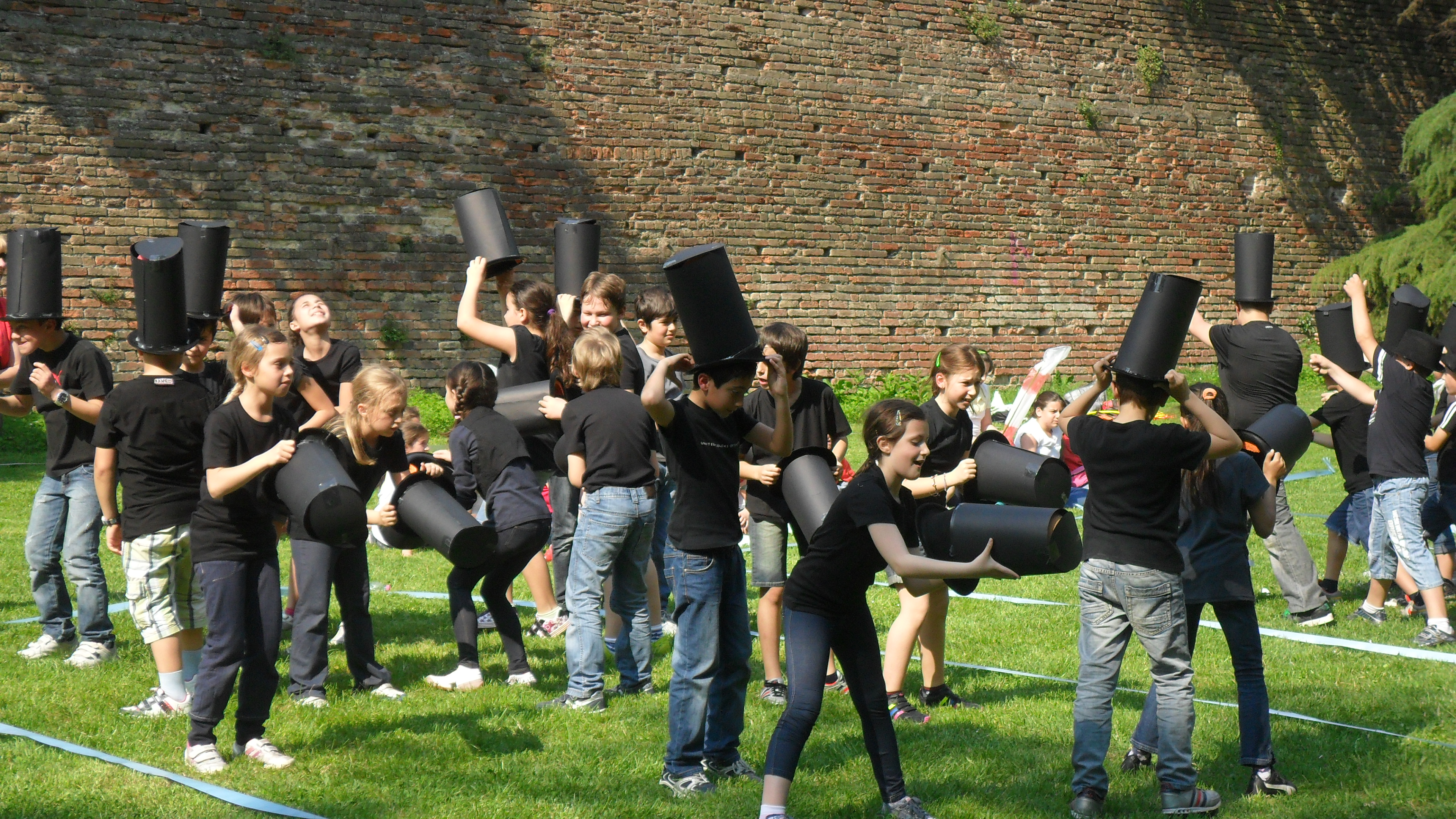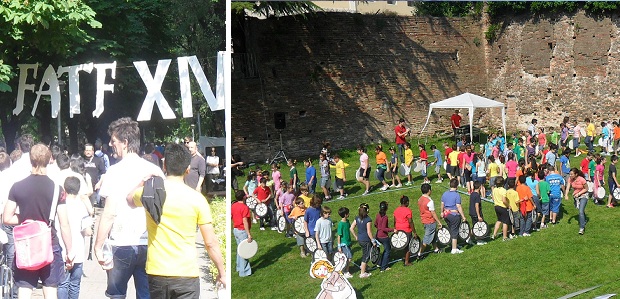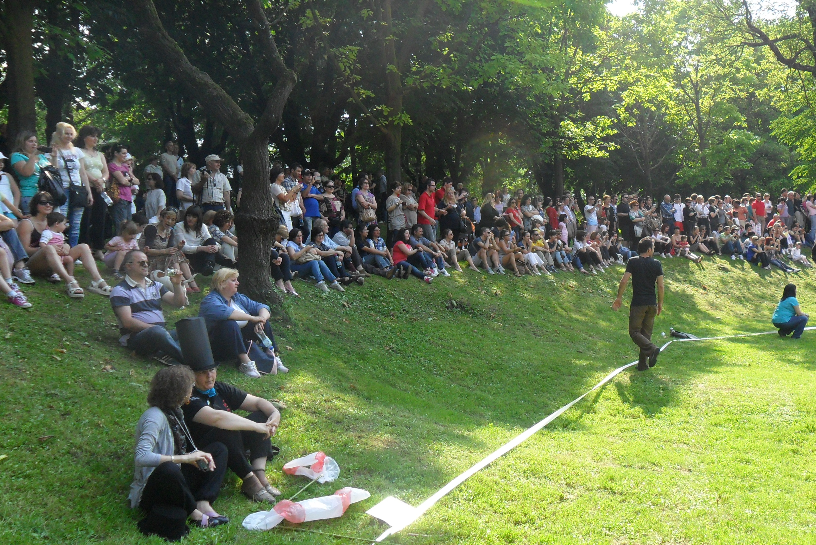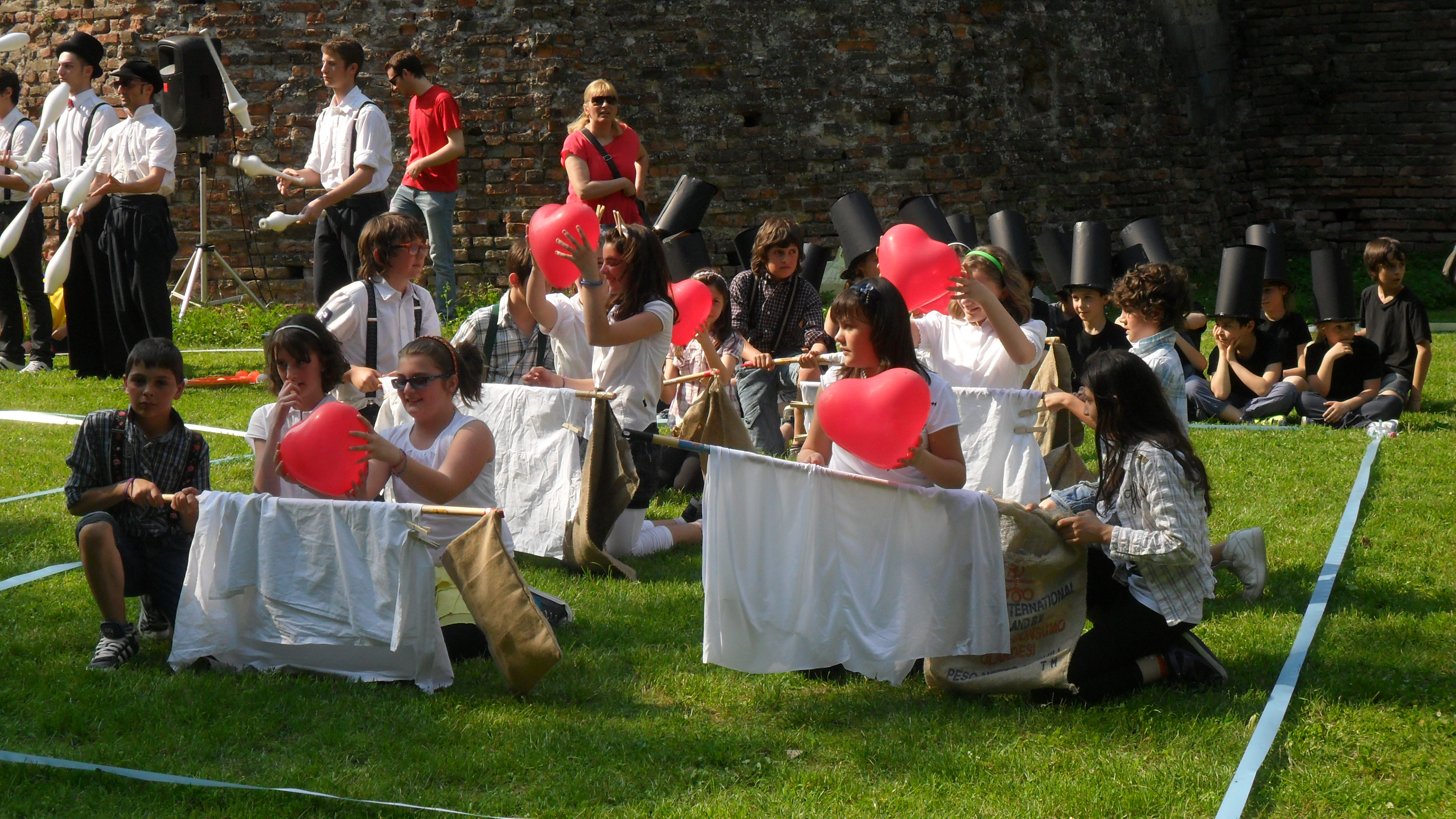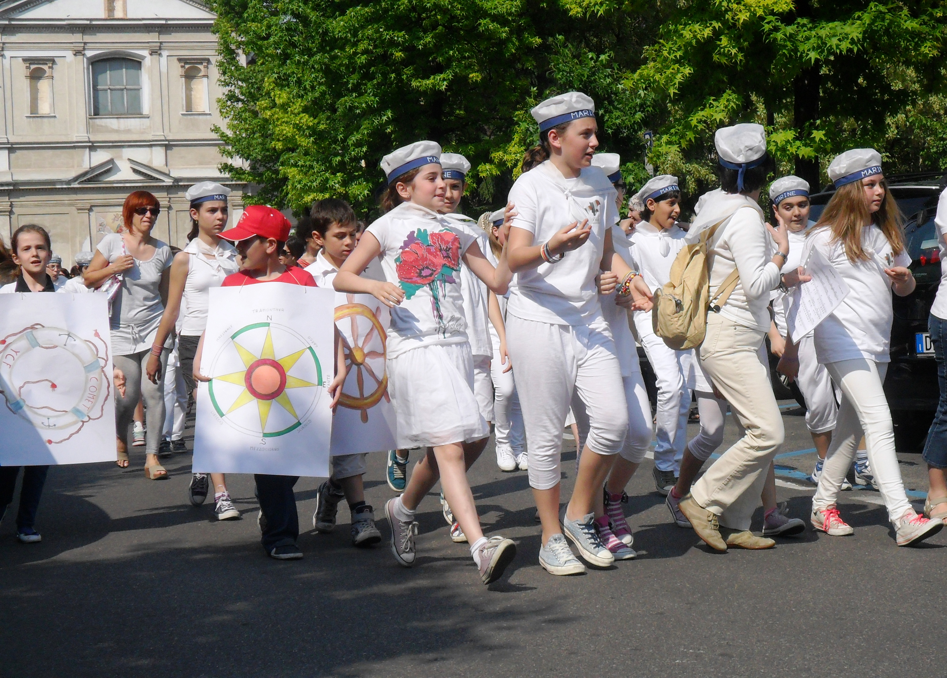 Per concludere in bellezza l’edizione 2012 il Franco Agostino Teatro Festival invade la città e la trasforma in un coloratissimo teatro a cielo aperto. Il sabato pomeriggio cremasco è stato rallegrato da tre cortei spettacolari diretti in piazza Duomo: un serpentone di biciclette, una carrozza d’epoca presa in prestito dall’Ersaf e un veliero volante, accompagnati da tutti i ragazzi partecipanti al festival teatrale. Dopo l’incontro i tre gruppi si sono spostati al Campo di Marte: circa cinquemila persone, di cui oltre mille bambini, si sono riuniti ai piedi delle Mura venete per un ultimo divertente momento teatrale a tempo di musica. Gli alunni delle trenta classi coinvolte hanno dedicato a genitori e spettatori una speciale performance in cui hanno messo in pratica tutto ciò che hanno imparato con i laboratori svolti durante l’anno nelle rispettive scuole. Attraverso costumi colorati e coreografie ad effetto ogni gruppo ha interpretato in modo diverso il tema del viaggio, sempre “allegro con fiducia”, fil rouge di questa XIV edizione. Sfilate e bancarelle continueranno fino a sera, quando alle 21.15 la Compagnia Due del comune svizzero di Vercio intratterrà tutti i presenti con lo spettacolo “Avanti!”, una divertente performance di numeri comici e circensi offerta dai clown Andreas Manz e Bernard Stockli.