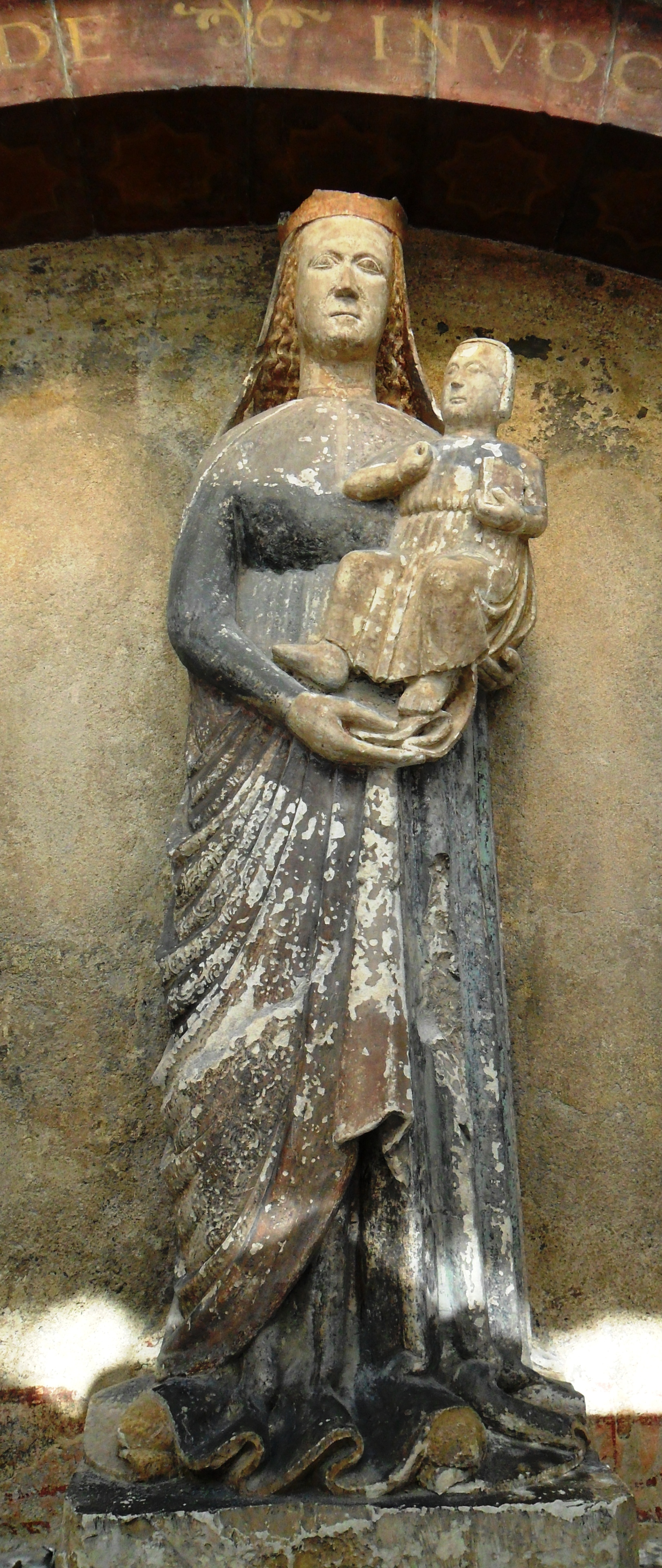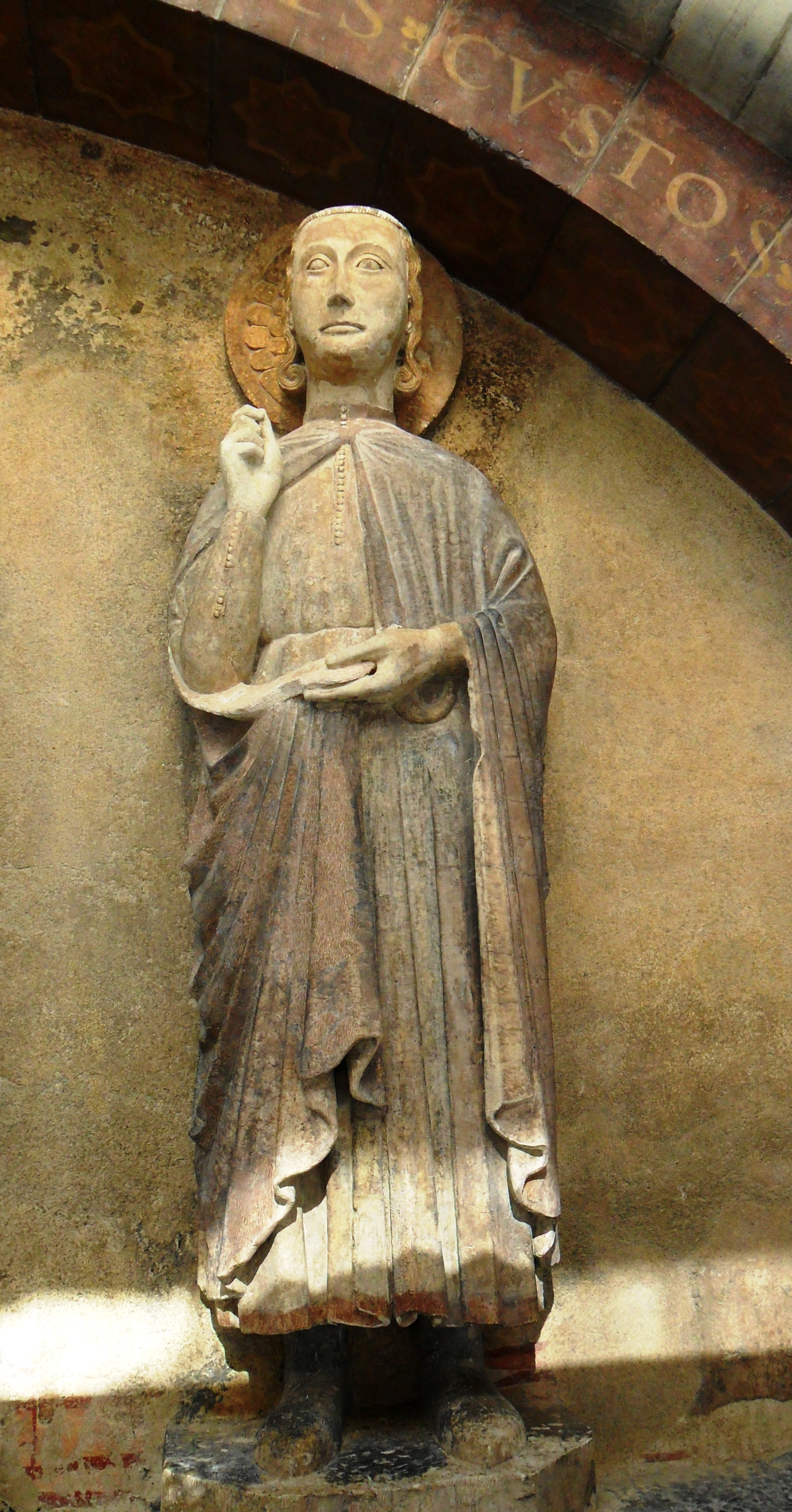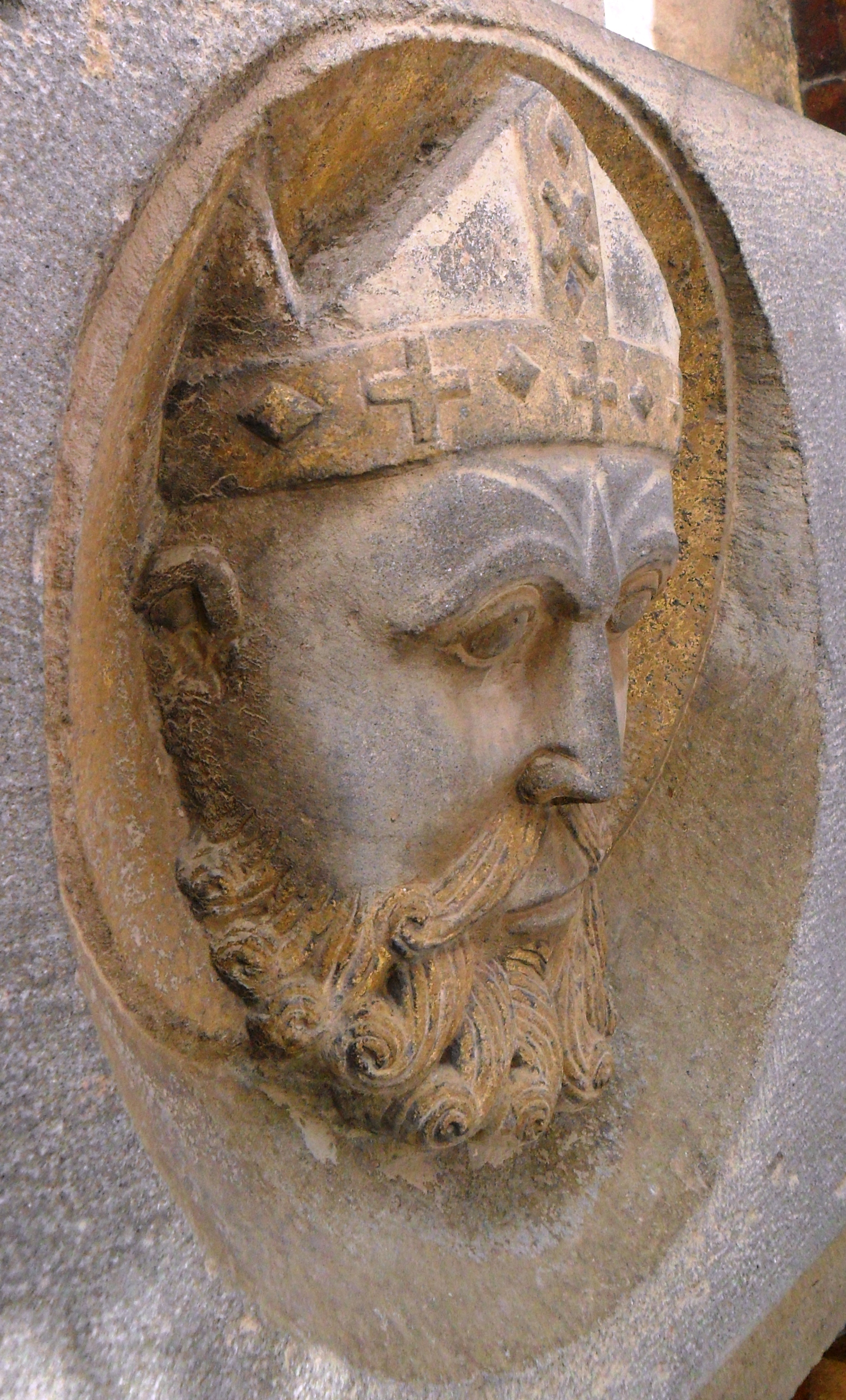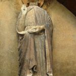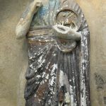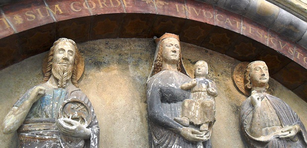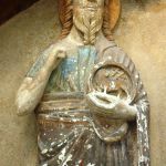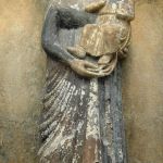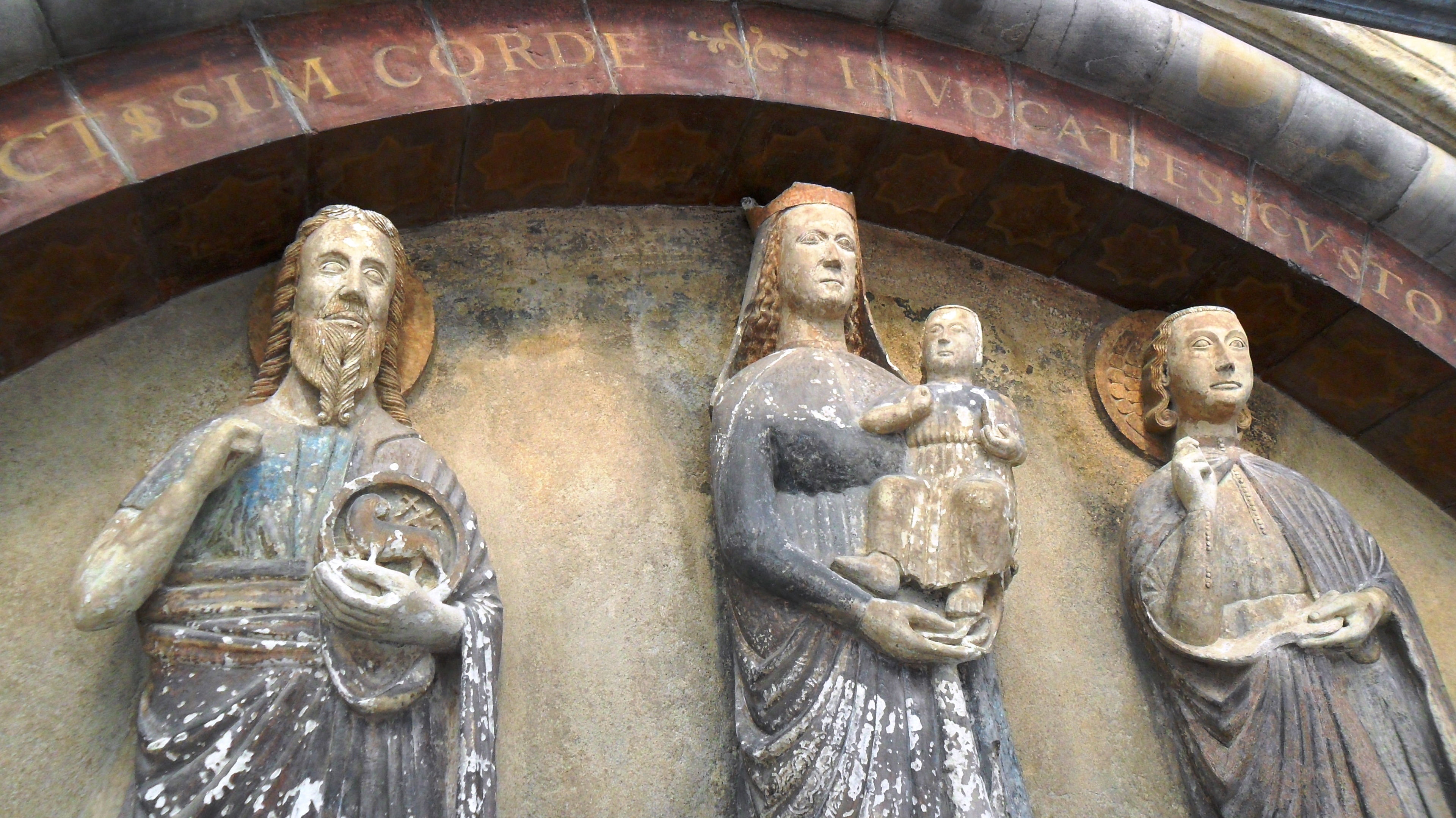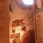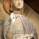 L’attenzione ora si focalizza sulla lunetta che sormonta il portale d’accesso, un vano delimitato da un arco a tutto sesto che ospita le statue della Vergine con il Bambino, San Pantaleone e San Giovanni Battista, probabilmente aggiunte in un secondo tempo rispetto alla costruzione della facciata romanica. Il restauro ha permesso di recuperare dettagli preziosi, come tracce di decorazione sul panneggio della Vergine, bottoni e rifiniture sull’abito di San Pantaleone o il simbolo tra le mani del Battista. Sull’architrave del portale compaiono, ora con maggior nitidezza, i cinque clipei decorativi: al centro l’Agnello, a sinistra il Clero e il Monaco, a destra il Vescovo e il Laico, che con la pulitura mostrano frammenti di pittura a foglia d’oro, rinvenuti anche su aureole, capelli e rifiniture delle statue sovrastanti. “Le statue in marmo sono state ricoperte da un intonaco fatto di calce e colore, che con il tempo è “scoppiato” – spiega Michele Bernardi, restauratore delle parti in pietra – Dopo aver estratto i sali è stata riadeguata la pellicola pittorica, ora è il mometno di stuccare le parti danneggiate con calce e polvere di marmo”.