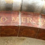 Sullo sfondo della lunetta sono stati trovati preziosi lacerti d’affresco, raffiguranti motivi decorativi geometrici che in passato avrebbero dovuto ricoprire tutta la superficie. Si possono notare diverse ridipinture effettuate durante i successivi restauri, le più antiche risalenti al Settecento, le ultima risalenti al restauro degli ani ’50; mentre queste ultime sono state tolte la Sovrintendenza ha scelto di storicizzare quelle settecentesche come segno del passaggio delle epoche, ricostruendola con tecnica a rigatino, la stessa usata per recuperare i lacerti rinvenuti all’interno della Cattedrale. La lunetta è racchiusa da un arco a tutto sesto in pietra, colorato con un legante resinoso, su cui è ricomparsa la scritta dorata in latino resa invisibile dal tempo; starà agli esperti contattati dalla Diocesi ricostruire l’esatta versione della frase, poi affidata alle abili mani dei restauratori.