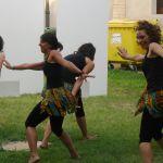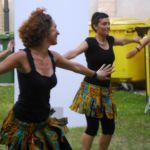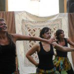 L’aperitivo è iniziato a ritmo di percussioni afrocubane con il duo musicale “Avez vous le chocolat?” e continuato con le travolgenti danze tribali rubate all’Africa dal gruppo di ballerine Muselekete; secondo round al ritmo travolgente della capoeira, arte marziale di origine brasiliana divenuta famosa per sembrare una spettacolare danza a corpo libero, interpretata in questo caso da Luciano Arnieri. Ci si sposta ad est con le seducenti danze orientali proposte dalle ragazze dell’associazione culturale orientale “Silvia Raqs”, per terminare con l’esibizione della scuola Aram Project, fusione tra balli tribali e danza del ventre.
