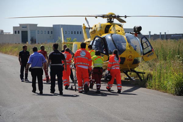 Sopra, l’elisoccorso (foto Giulio Giordano)