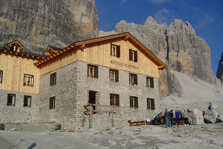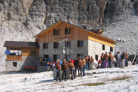 Tutto è iniziato da un gruppo di amici soprannominati Chei da la barôla,” quelli della bavaglia” in dialetto cremasco, proprio per quella fama di buongustai che spesso li portava a macchiarsi la camicia durante le spaghettate in compagnia. Tra le mete preferite da questo gruppo spontaneo cremasco c’era il Golf Club Val Rendena di Bocenago, in Trentino, zona prediletta per le escursioni estive di cremaschi e cremonesi. Lì il gruppo conosce la famiglia Alimonta, responsabile di uno dei rifugi più suggestivi della zona del Brenta. A gestirlo c’è tutta la famiglia: Ezio e Anna Maria, detta Nini, con figli e nipoti. Tra Ezio e il gruppo di cremaschi nasce subito una grande amicizia, che si consolida estate dopo estate. La salita al rifugio Alimonta divenne quindi una delle attività tipiche nelle estati di Chei da la barôla, una scarpinata di quasi quattro ore che mette a dura prova la resistenza e la buona volontà di molti, ma stimola spirito e battute gustose tra i veterani della scalata e chi, suo malgrado, non è avvezzo a questo genere di avventure. Situato a 2600 metri, il rifugio è uno dei principali punti di snodo per gli alpinisti impegnati nelle ferrate del Brenta; un punto panoramico mozzafiato che ogni anno conta un migliaio di visitatori di passaggio, tanto da rientrare tra i più gettonati sfondi per pc.