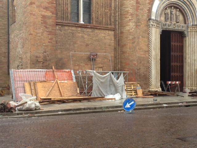 Il vento spazza via le impalcature