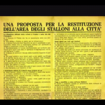 Ma perchè ricordare tutto questo proprio ora? Si chiede la voce narrante del video. «Perchè la giunta ha deliberato un progetto di utilizzo dell’area Stalloni Non entriamo nei particolari del progetto ma nel metodo in cui questa scelta è maturata. Una scelta così importante come quella per l’utilizzo degli Stalloni può essere presa in fretta e furia senza coinvolgere la città? Credo proprio di no. Trent’anni fa una intera città faceva proposte alla forze politiche, oggi decidono senza un confronto con la città. Pensano che i cittadini non abbiano nulla da dire sugli Stalloni. Trent’anni fa snobbavano il Comitato, ora non è tanto diverso. Facile far partecipare i cittadini in campagna elettorale quando non si decide nulla, e quando si decide su cose così importanti ci si dimentica dei cittadini. Spero che questa giunta e questo consiglio ci ripensino. Trent’anni fa la città aveva partecipato, perchè non dovrebbe farlo anche oggi se coinvolta veramente?».