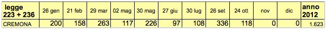 Mese dopo mese, il 2012 fa registrare dati sempre più preoccupanti per la provincia di Cremona sul fronte licenziamenti e si delinea come il peggiore periodo degli ultimi anni. Prime avvisaglie di questa situazione erano arrivate a inizio luglio: osservando l’intervallo gennaio-giugno si notava quanto la somma delle procedure fosse vicina al complessivo del 2008 (1061 contro 1097). E dopo il boom di settembre (+92% rispetto allo stesso mese del 2011) altro risultato negativo è appena giunto attraverso i numeri di ottobre (aggiornati a mercoledì 24): conteggiando i licenziamenti di questo 2012 non ancora finito, si riescono a superare ampiamente i totali del 2011, del 2010 e del 2009 (anni nei quali ci si è assestati tra i 1350 e i 1570). Un traguardo di cui andare tutt’altro che orgogliosi. La crisi continua a mordere. E non siamo ancora arrivati a dicembre.