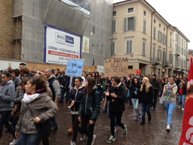 Manifestazioni e sit-in in tutta Europa in occasione dello sciopero generale indetto della Confederazione europea dei sindacati, alla quale ha aderito anche la Cgil. Anche quella cremasca in piazza Duomo con un banchetto insieme a tanti rappresentanti delle categorie sindacali e ai rappresentanti di Sinistra ecologia e libertà, in presidio. Gli studenti capeggiati dal Comitato in difesa della Scuola di Crema, hanno sfilato per la città, urlando slogan, contro il Governo, contro la scuola di Cl ferma “con le quattro frecce”, a Ombriano.