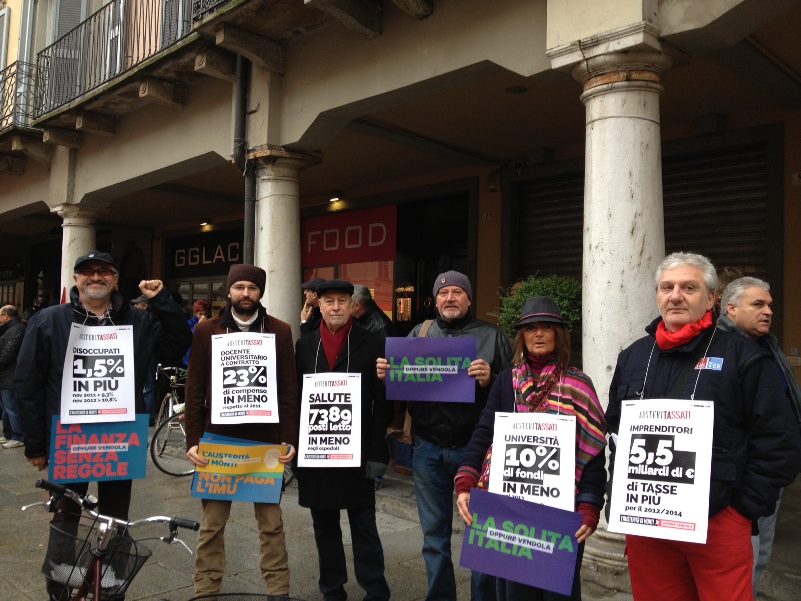 Quando gli studenti, oltre 500, arrivano in piazza Duomo, scortati dalle forze dell’ordine, scoppia l’applauso. Ad attenderli in piazza i sindacalisti della Cgil, i rappresentanti di Rifondazione e di Sel, rigorosamente con cartelli di denuncia della situazione economica e sociale degli italiani. Ci sono i ragazzi, i lavoratori e i sindacati, a manifestare alla pari dei colleghi spagnoli, greci, portoghesi, cechi, contro l’austerità europea.