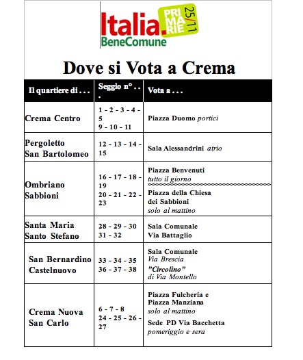 DOVE VOTARE DOMENICA 25 NOVEMBRE A CREMA
