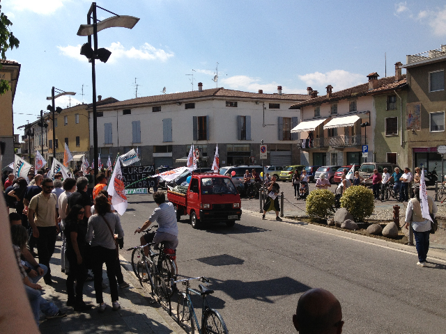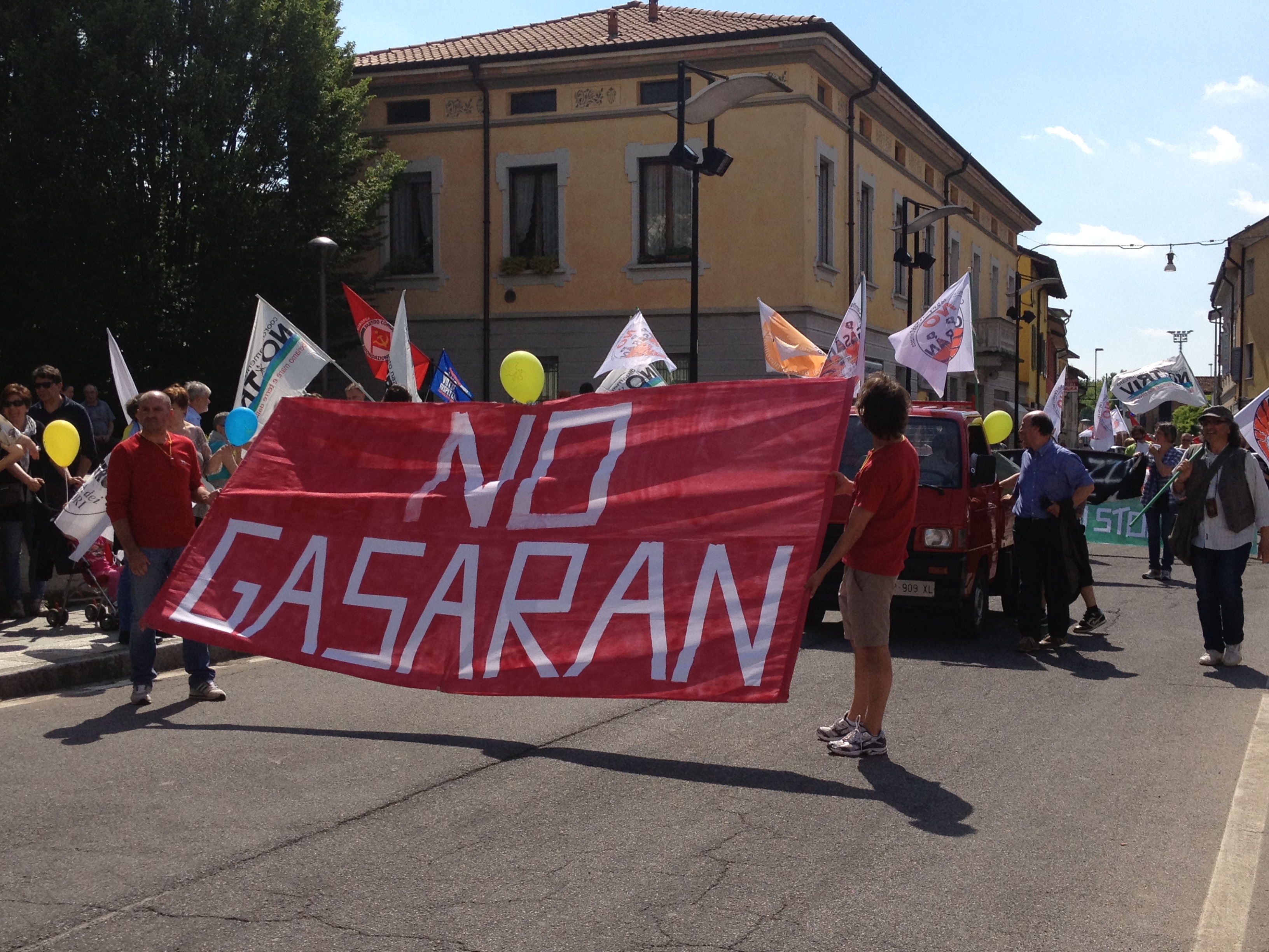 “Sindaco Bernardi sei licenziato”, questo lo slogan più scandito lungo tutto il tragitto dei manifestanti, composti dai vari comitati della zona: Comitato Acqua Pubblica, i comitati No Gas di Bordolano e Corneliano Laudense, la Forgia, il Comitato scuola pubblica e da Rifondazione Comunista, rappresentata da Antonio Miglio, Mario Lottaroli e Piergiuseppe Bettenzoli. Unico consigliere comunale del paese presente, Colombo Carpani. Tanti i residenti che si sono affacciati alle porte e alle finestre durante il passaggio del corteo, scortato da polizia e carabinieri, ma nessuno che si è unito. Circa due ore e mezzo per concludere poi di fronte alla centrale della Stogit in via Vallarsa.