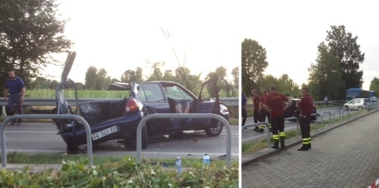 Grave incidente questa sera intorno alle 19.00 a Trezzolasco, frazione di Sergnano. Un violentissimo scontro frontale, prima delle curve all’ingresso dalla frazione fra due macchine: una Ford Fiesta e una Golf ha avuto come esito quattro feriti dei quali uno grave. La Fiesta con a bordo tre giovani provenienti da Mozzanica, secondo le prime ricostruzioni e i testimoni avrebbe affrontato la curva a grande velocità. L’utista avrebbe così perso il controllo dell’auto che ha investito in pieno una Golf condotta da un albanese proveniente da Sergnano che stava facendo rientro a casa dopo il lavoro. Immediati i soccorsi: sul posto la Polstrada, i vigili del fuoco e i sanitari del 118, tre ambulanze provenienti una dall’ospedale di Treviglio e due dall’ospedale maggiore di Crema. I medici, giunti sul posto, hanno immediatamente soccorso i feriti, che in un primo momento sembravano essere tutti e quattro non gravi. Solo dopo, all’arrivo in ospedale uno dei tre, condotti a Crema si è aggravato ed è stato ricoverato in codice rosso.