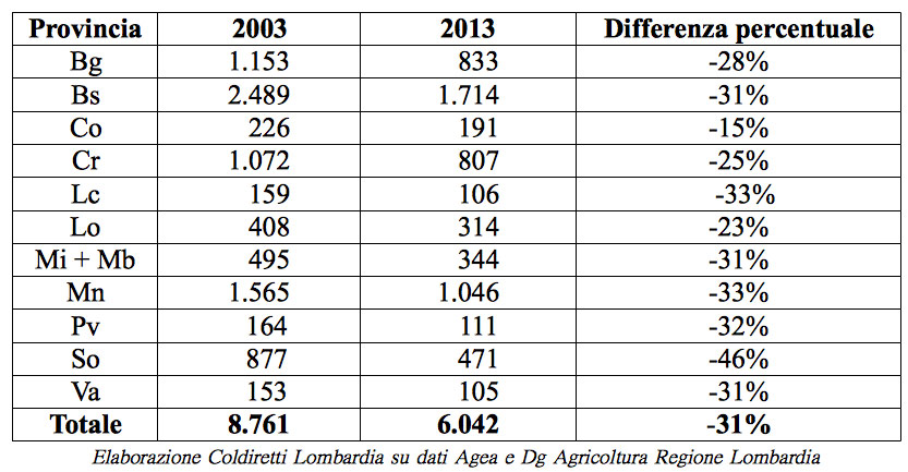 “Dal 2003 a oggi – spiega Ettore Prandini, Presidente di Coldiretti Lombardia – è stato perso un patrimonio enorme del nostro settore zootecnico. E se alcune aziende si sono ristrutturate sia dal punto di vista produttivo che della gestione, molte altre hanno chiuso, punto e basta, a causa dei costi sempre più alti a fronte di un valore del latte che spesso non ha permesso neppure di coprire le spese”.