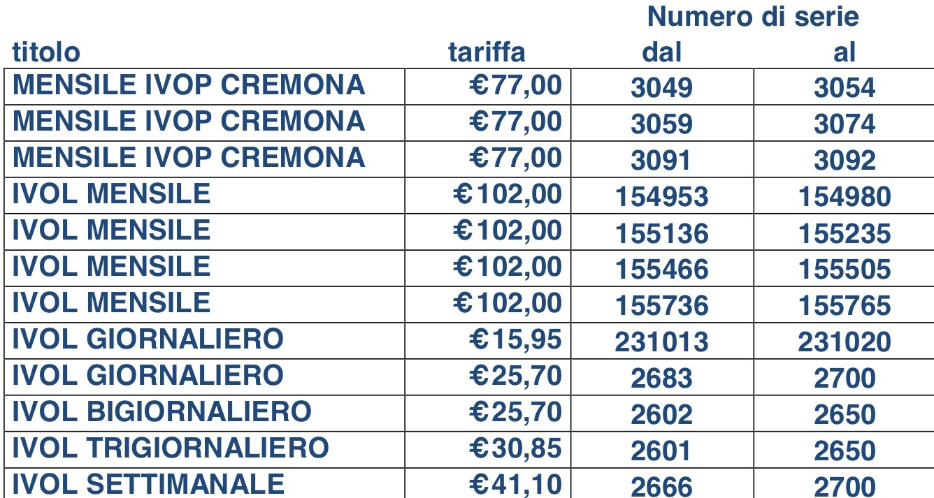 Ritiro dei biglietti, multa e pericolo di incorrere in una denuncia per ricettazione. Questo il chiaro avviso diffuso da Autoguidovie a tutti i viaggiatori che saranno trovati in possesso dei biglietti rubati all’Infopoint della stazione di Crema qualche settimana fa. Ad essere spariti titoli di viaggio della serie ‘Io viaggio ovunque in Lombardia’ e ‘Io viaggio ovunque in Provincia di Cremona’ per un valore ipotetico di oltre 26mila euro.