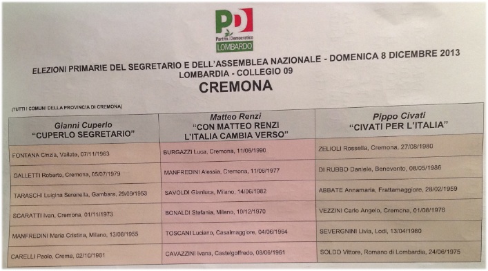 Cento seggi in provincia. Trentasei nel Cremasco. 450 volontari. La macchina organizzativa del Pd provinciale è pronta per le primarie dell’8 dicembre che eleggeranno il segretario nazionale del partito tra Matteo Renzi, Gianni Cuperlo e Giuseppe Civati. Un appuntamento presentato a Cremona da Matteo Piloni, neo-segretario provinciale, da Franco Verdi, presidente Assemblea provinciale, e da tre rappresentanti delle diverse liste (Luca Burgazzi per Renzi, Roberto Galletti per Cuperlo e Daniele Di Rubbio per Civati). “L’aspetto fondamentale di queste primarie – ha spiegato Piloni – è il lavoro fatto insieme per portare più persone possibili al voto. I cento seggi in provincia dimostrano la voglia di far partecipare moltissima gente e la capacità organizzativa del partito”. Tredici i seggi in città, aperti dalle 8 alle 20. Cento quelli in provincia, cinque in meno delle scorse primarie che erano, però, primarie di coalizione e vedevano candidati Bersani, Renzi, Vendola, Tabacci e Puppato (15mila erano stati gli elettori in provincia).