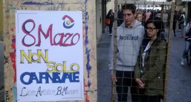 A proposito di coinvolgimento scolastico, un primo esempio è rappresentato dell’installazione realizzata dall’associazione Tazebau in collaborazione con il liceo artistico Bruno Munari. Un ragazzo ed una ragazza rinchiusi in un prisma reticolato. Due persone, due generi differenti, due sessualità contrapposte. Eppure, entrambi costretti nello stesso spazio, intrappolati e delimitati da una rete. “I ragazzi – spiega Gianna Bianchetti – rappresentano le problematiche maschili e femminili. Sono ingabbiati, così come sono interconnesse le loro difficoltà”. Il messaggio è chiaro: anche chi agisce con la violenza porta con sé i suoi malesseri. Sarebbe dunque sbagliato pensare che il problema della svalutazione – o peggio, la denigrazione – della figura femminile sia un problema solo da misogini. Perché, appunto, anche da parte dell’uomo possono sussistere complessità.