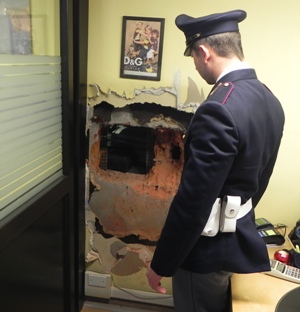 La dinamica dell’accaduto è al vaglio delle Forze dell’Ordine. Quanto di intelligibile, ad un primo sguardo, è ciò che rimane all’indomani della spaccata: i buchi nelle pareti dei locali.