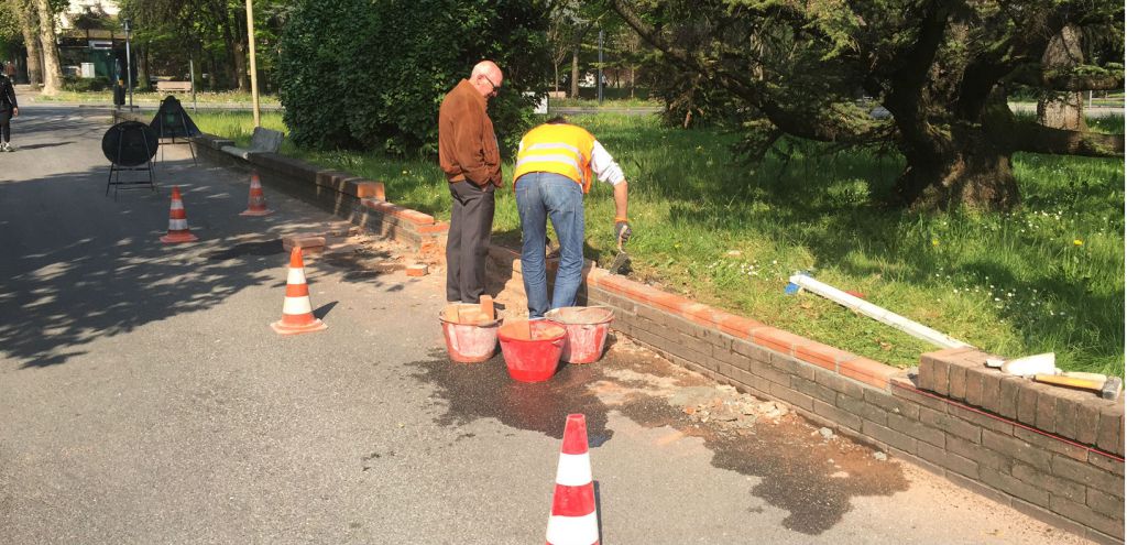La ricostruzione del muretto abbattuto