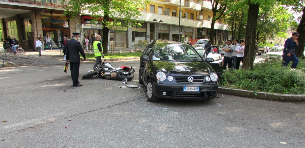 CREMA – Una mancata precedenza e l’elevata velocità hanno provocato un grave incidente oggi, poco dopo le 15, in viale Repubblica. Una Polo condotta da una donna di 46 anni, A. C. di Crema, proveniente dallo stadio e diretta verso il semaforo, ha girato a sinistra per entrare nella via privata che fiancheggia il supermercato Punto Zero per andare in via Cresmiero. Probabilmente la donna ha calcolato male la velocità della moto Mv Agusta 800 che arrivava dal semaforo di Porta Serio e si è trovata a sbarrargli la strada. La moto ha centrato l’auto nella parte finale e l’urto ha provocato la pesante caduta del centauro, S. P., un ragazzo di 22 anni di Crema. Il tonfo ha avuto difetti disastrosi per il centauro, tanto che i soccorritori hanno dovuto rianimarlo sul posto e poi trasportarlo in tutta fretta all’ospedale di Crema, dove i medici lo hanno medicato e ricoverato nel reparto di rianimazione, riservandosi la prognosi, anche se, dopo gli accertamenti effettuati, il ferito non corre pericolo di vita. Sul posto, vigili del fuoco di Crema, Polizia locale, auto medica e ambulanza del 118. Anche la donna alla guida dell’auto ha dovuto ricorrere alle cure mediche, in quanto in stato di choc per quanto avvenuto e per una ferita alla testa che si è procurata andando a sbattere contro il montante della sua auto. L’incidente sarebbe stato registrato dalle telecamere di un negozio sorge a pochi metri dal luogo dell’incidente e le riprese sono state messe a disposizione della polizia locale.