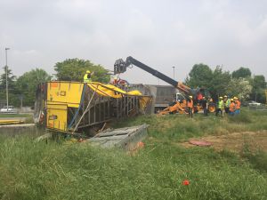 ROMANENGO – Ha perso il controllo del pesante carico che stava trasportando ed è finito fuori strada, fortunatamente con conseguenze esclusivamente per il mezzo e non per le persone. E’ successo intorno alle 13.30 alle porte di Romanengo, sulla Serenissima, dove un pesante Tir che trasportava nel rimorchio le inferriate delle gabbie degli animali del circo Orfei ha messo due ruote fuori strada. Il terreno ha ceduto e il rimorchio è slittato nella roggia, andando a sbattere contro la spalla di cemento, che ha divelto e terminando la sua corsa qualche metro più il là. Fortunatamente mentre il rimorchio si ribaltava tra roggia e campo, la motrice con il guidatore, J. B., 33 anni di Torino, restavano in strada, evitando danni fisici per l’autista. Traffico subito in tilt, vista l’ora, e sul posto è arrivata una pattuglia della Polstrada di Crema che ha istituito il traffico alternato. Il pesante rimorchio è stato recuperato dagli uomini e dai mezzi dell’officina Maggi che, grazie a una potente gru, ha sollevato il mezzo e lo ha rimesso in strada. Le operazioni di recupero sono ancora in corso e la strada sarà di nuovo percorribile nei due sensi intorno alle 16.
