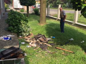 La parte di villa bruciata e, nell’articolo, il proprietario con alcune masserizie divorate dalle fiamme