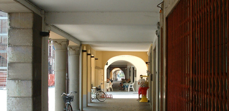 Un suggestivo scorcio dei portici di Soncino, nei pressi del municipio