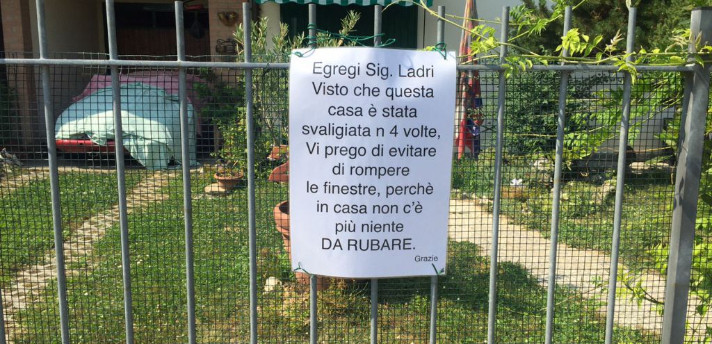 PALAZZO PIGNANO – Il signor Alessandro non ne può più e la scorsa settimana ha fatto la sua comparsa in comune con un cartello plastificato sul quale c’era un avviso. Per i ladri. Il signor Alessandro abita a Palazzo Pignano in una villetta nella zona nuova del paese. Assaltata a più non posso dai ladri. Lui ha trovato porte e finestre forzate per quattro volte in pochi mesi, forse perché la sua casa è