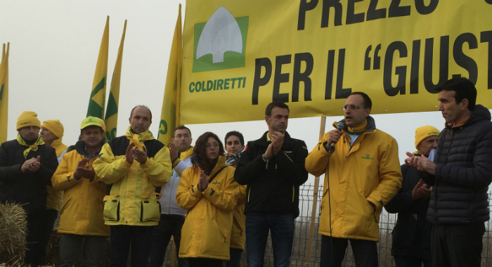 “L’Italia – afferma un comunicato di Coldiretti – rischia concretamente di perdere per sempre la propria produzione di latte perché oggi quasi la metà del latte consumato in Italia viene oggi dall’estero e la situazione è precipitata nell’ultimo anno con il taglio pesante nei compensi riconosciuti alla stalla dove mancano anche quei pochi centesimi al litro necessari per garantire l’alimentazione delle mucche ed evitare la chiusura. Sotto accusa il fatto che il latte italiano viene sottopagato al di sotto dei costi di produzione con le importazioni dall’estero che vengono spacciate come Made in Italy per la mancanza di norme trasparenti sull’etichettatura. Alcuni manifestanti gridano un antico proverbio bergamasco ‘A la (v)àca a ‘s móns ol làcc, mia ‘l sànch!’, ‘alla vacca si munge il latte, non il sangue’ mentre altri innalzano cartelli con le scritte ‘Made in Italy ostaggio di una multinazionale straniera’, ‘Avete preso i nostri marchi non vi daremo le nostre mucche'”.