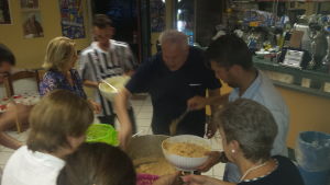 I cuochi hanno realizzato cinque tipi di riso: con i funghi, acciughe e peperoncino, zafferano e formaggio, frutti di mare e speck e zola. E poi ancora panini con il salame, frutta, dolcetti e vino bianco. A condire il tutto ci ha pensato l’ospitalità di don Emilio che ha ricordato: “Bisogna che i parroci amino la gente”.