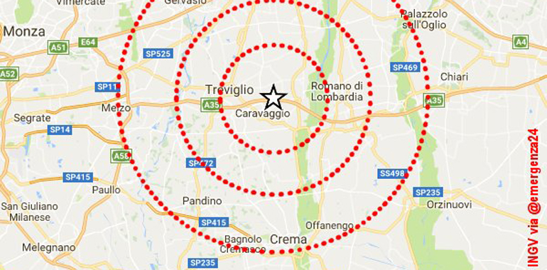 Scossa di terremoto con epicentro a Caravaggio sabato pomeriggio