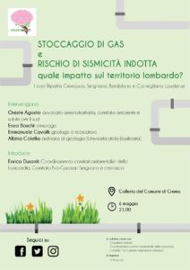 “Stoccaggio gas e sismicità indotta: quale rischio per il territorio cremasco?”. Se ne parla sabato 6 maggio alle 21 a Palazzo Comunale. Durante l’assemblea pubblica verranno affrontati e discussi i rischi della sismicità indotta per le operazioni metanifere e in particolar modo per gli stoccaggi, dei quali il territorio Lombardo detiene il primato su metano in vecchi giacimenti, e con il progetto Hub del Gas la situazione potrebbe peggiorare.