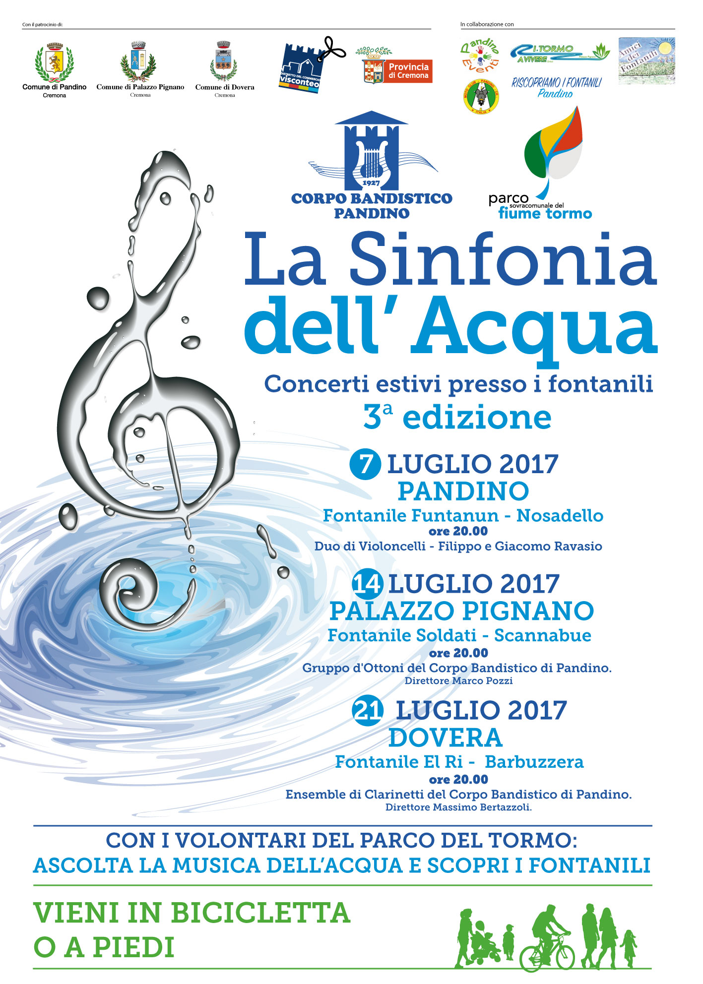 Quest’anno i concerti vengono proposti nei tre Comuni nei quali da diversi anni sono nate spontaneamente associazioni di volontari dedicate alla tutela e alla manutenzione dei fontanili e del Tormo: Pandino (con l’associazione “Riscopriamo i fontanili”), Palazzo Pignano (con l’associazione “Ri-Tormo a vivere”), Dovera (con l’associazione “Amici dei fontanili”). I concerti si svolgeranno alle ore 20 in tre venerdì sera del mese di luglio: il 7, il 14, il 21.