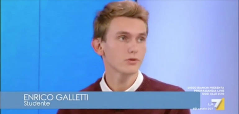 Dopo essere stato alla ribalta delle cronache nazionali per una bellissima storia raccontata sul web (e finita anche sul Corriere della Sera), il blogger cremonese nonché studente del liceo classico Manin, Enrico Galletti, diventa ora protagonista anche nei canali televisivi nazionali. Venerdì pomeriggio sarà infatti in diretta su La7 al programma Tagadà (in onda dalle 14.20 alle 16.20) in un faccia a faccia con il ministro dell’Istruzione Valeria Fedeli.