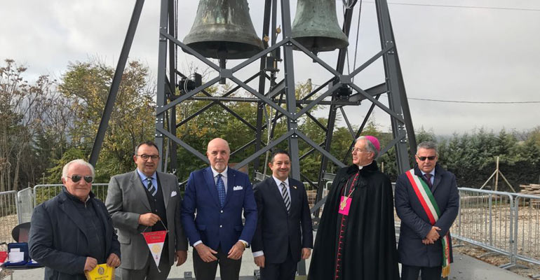 La cerimonia di consegna della torre campanaria provvisoria che ospita le due campane si è svolta ieri a Norcia, alla presenza, tra gli altri, dell’arcivescovo Renato Boccardo (diocesi Spoleto-Norcia), Renato Crotti, in rappresentanza del Gruppo Arvedi, Marco Cassinotti, della diocesi di Crema.