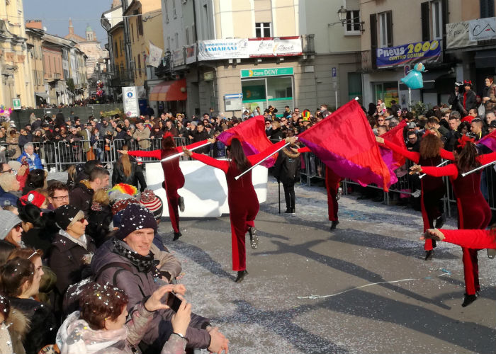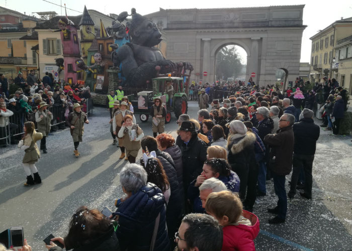 Crema strapiena in occasione della seconda domenica di Carnevale. La sfilata dei grandi carri allegorici ha riservato parecchie sorprese, a cominciare dai gruppi folkloristici che hanno animato lo show.