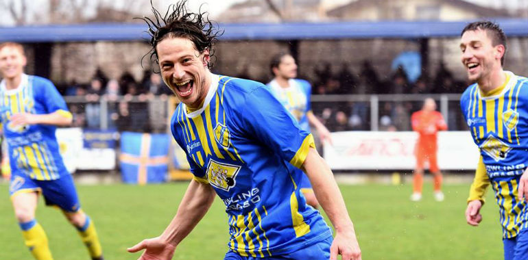 Sin dal fischio d’avvio la “fame agonistica”, che ha caratterizzato i giocatori gialloblu ha fatto la differenza in campo, costringendo gli avversari bresciani a badare con attenzione alla fase difensiva. Il gioco aggressivo, messo in mostra dai padroni di casa è stato da applausi e di una precisione svizzera negli scambi e nelle sovrapposizioni degli esterni che sono andati spesso al cross. Non per niente il primo gol di Ferrario è scaturito da un cross perfetto di Boschetti dalla destra, messo in rete dal bomber con un preciso colpo di testa.