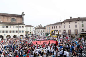 In più di 3.500, di cui 800 bambini delle scuole cremasche, a conquistare la città con l’allegria, la musica, i colori e un vero e proprio ‘Carosello di luce’. La festa finale del Franco Agostino Teatro Festival ha stregato ieri (sabato 26 maggio) l’intera città, con la versione speciale, al tramonto, nell’occasione del ventennale. L’avvio in piazza Garibaldi. Prima, con lo spettacolo di Acrobatica Aerea e delle agoniste della ritmica dell’Us Acli di Crema con Marina Bokatchuk. E poi col raduno dei gruppi sotto le grandi biciclette con le girandole colorate, simbolo delle parate che da lì a poco avrebbero invaso le vie del centro: azzurra, verde, rossa e bianca. Ognuna guidata dal proprio trampoliere (Gruppo Parblù di Bergamo), figura da fiaba. E da una banda, emblema della festa. Con il Fatf, hanno sfilato il Corpo bandistico ‘Giuseppe Verdi’ di Ombriano e Crema; la Filarmonica Castiglionese; il Corpo bandistico di Vailate e il Corpo bandistico di Castelleone. Le scenografie (biciclette per la parata) sono state realizzate dal corso di scenografia dell’alternanza scuola-lavoro del Fatf, con gli studenti della quarta liceo artistico Munari e il coordinamento di Cristian Raglio.