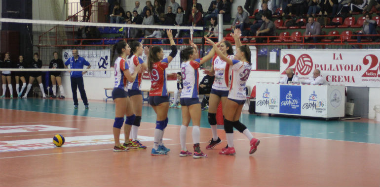 Coach Moschetti deve fare a meno della centrale Diagne per un problema alla spalla ed in sestetto parte Frassi mentre tra le schiacciatrici la scelta cade su Pinetti e Ginelli. Dopo un avvio incoraggiante le cremasche soffrono la battuta avversaria e commettono diversi errori che lanciano le bergamasche fino al 7-11. La pronta reazione riporta le squadre in parità ma non cancella le difficoltà, le biancorosse non sono reattive e commettono anche un fallo di rotazione con le bergamasche che arrivano al 17-22 per poi gestire il vantaggio.