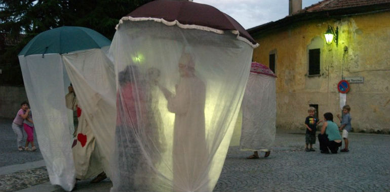 Approfondimento sul tema della cortesia, passando in rassegna gesti, parole, sguardi, canzoni ‘cortesi’, per creare un vero e proprio repertorio. Poi, la preparare un’azione performativa: una sfilata con atti gentili da dispensare agli abitanti. In particolare, i partecipanti, che vagheranno sotto ombrelli-universo, impareranno a trasformarsi in donatori di poesia (che dispensano abbracci, gesti e parole cortesi), in distributori di gentilezza (che nominano le persone patrimonio dell’umanità, inventandone sul momento la motivazione), in sussurratori (che affidano all’orecchio delle persone dolci suggestioni), in astronomi (che mostrano ad ognuno la propria stella spiegandone le caratteristiche), in dispensatori di serenate (che donano parole dolci di amore e amicizia, esaltando le qualità delle persone che incontrano), in narratori (che offriranno micro-azioni, poesie, detti, proverbi, filastrocche, canti).