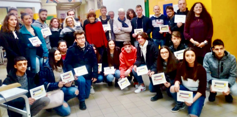 Gli alunni premiati; Fedele Pesenti Campagnoni Marco, Dendena Giada, Shen Hui Fang, Traspedini Mattia, Lepadat Petrisor Catalin, Giupana Laurentiu, Santini Matteo, Khouildi Mouldi, D’Avino Gaia, Fasoli Gemma, Cerruti Alessia, Vairani Emanuele Enrico, De Angeli Riccardo, Lucini Samuele, Coti Zelati Gaia, Asti Alice, Telga Aurora, Zecchini Gabriele, Bertoni Michael, Dendena Alex, Marini Andrea, Zibetti Matteo, Vailetta Giada, Nichetti Aurora Maria, Galmozzi Matteo, Samokovared Kristiyan Zdravkov, Arpini Matteo.