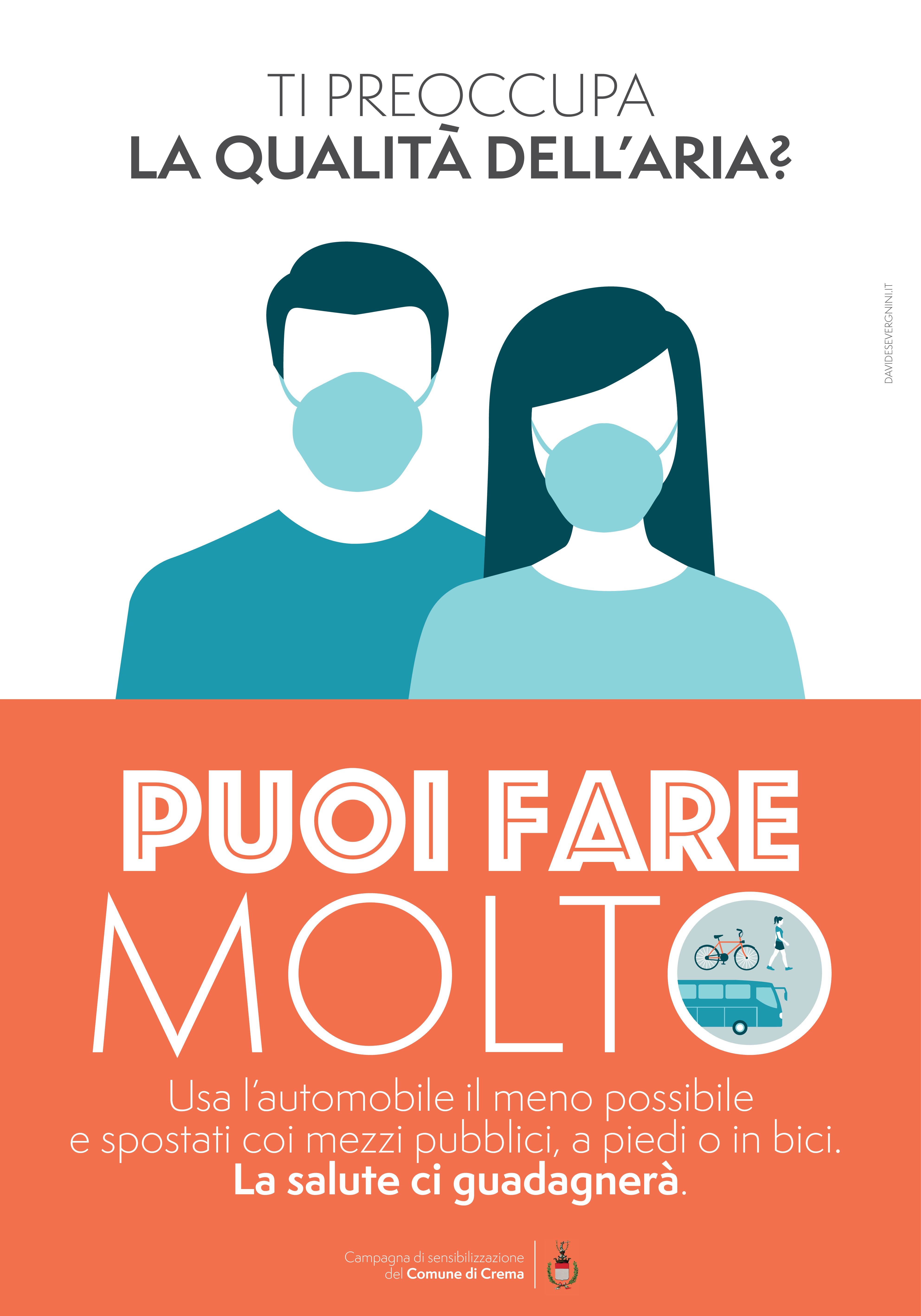 “Puoi fare molto” per la qualità dell’aria. E’ quanto riportano i quattro manifesti che da questa mattina e per 20 giorni saranno affissi in città. E’ solo la prima iniziativa della campagna di informazione e sensibilizzazione che il Comune di Crema ha messo in campo per condividere con i cittadini le buone pratiche per evitare l’inquinamento da Pm10.
