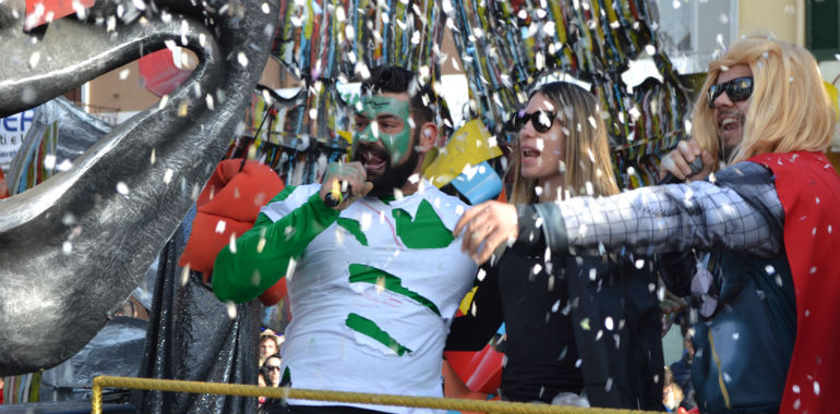 Ospite d’onore di questa soleggiata domenica pomeriggio il Carnevale di Alba Adriatica, che ha portato i suoi strepitosi costumi ispirati agli dei dell’Olimpo. Ma anche i ballerini brasiliani e il gruppo musicale Forteza di Verona.