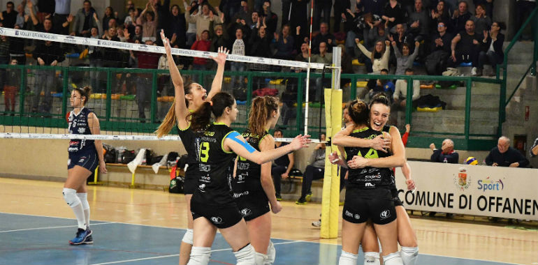 Cuore, coraggio e qualità per una domenica da leonesse. In un crocevia fondamentale per il prosieguo della stagione, la Chromavis Abo tira fuori le unghie e resta in corsa per la zona play off del campionato di B1 femminile. Per la squadra di Leo Barbieri, fondamentale la vittoria del PalaCoim contro la “bestia nera” Florens Re Marcello (3 sconfitte nei precedenti scontri), formazione che occupa il terzo posto in classifica e dunque rivale delle neroverdi cremasche. Dopo aver perso il primo set, Offanengo ha saputo rialzarsi, lottando strenuamente nella fase centrale del match salvo poi salire in cattedra nel quarto set e riuscendo a chiudere 3-1.