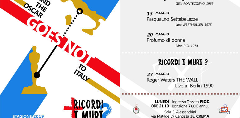 Questi i temi, le date ed i titoli specifici: ‘…AND THE OSCAR GOES NOT TO ITALY’ (dal 29 aprile al 20 maggio 2019). Rassegna dedicata ai capolavori del cinema nostrano che nella storia sono stati a un passo dall’olimpo, in lizza per l’Oscar al Miglior Film Straniero sino alla finale notte di gala hollywoodiana, …senza tuttavia vedersi aggiudicata, in estrema conclusione, l’ambita statuetta.